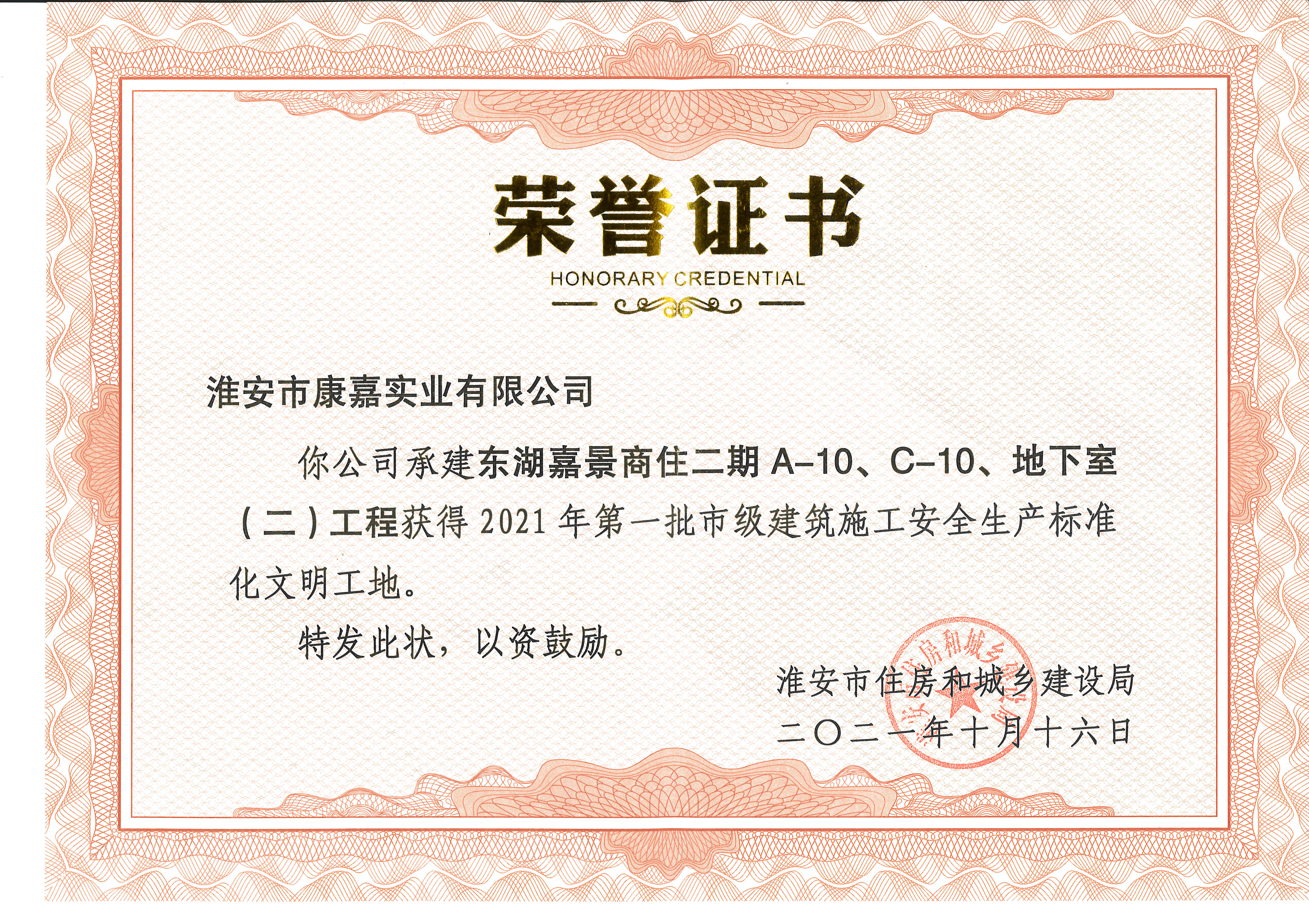 詳細介紹:近日,2021年淮安市第一批市級建筑施工安全生產(chǎn)標準化文明工地項目名單揭曉,康嘉實業(yè)公司承建的淮安市大同路小學及東湖嘉景商住二期A-10、C-10、地下室(二)工程兩個項目榮獲市級標化工地稱號。 項目開工伊始,兩個項目部便將獲得標準化工地作為安全文明總目標,根據(jù)省市級安全文明工地實施標準,制定詳細的實施方案,建立以項目部為核心的創(chuàng)建管理體系。在文明標化工地...